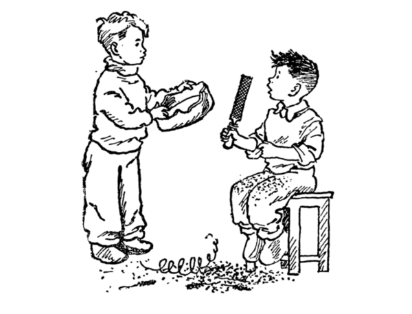 — Ну да, — говорит Мишка. — Я её пилил напильником, пилил, вот она и сделалась сковородкой. Ну ничего, сковородка тоже нужна в хозяйстве.