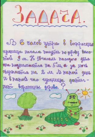 В 5 классе мы учились решать и составлять математические ребусы, кроссворды, иллюстировали задачи. Это некоторые из моих работ.