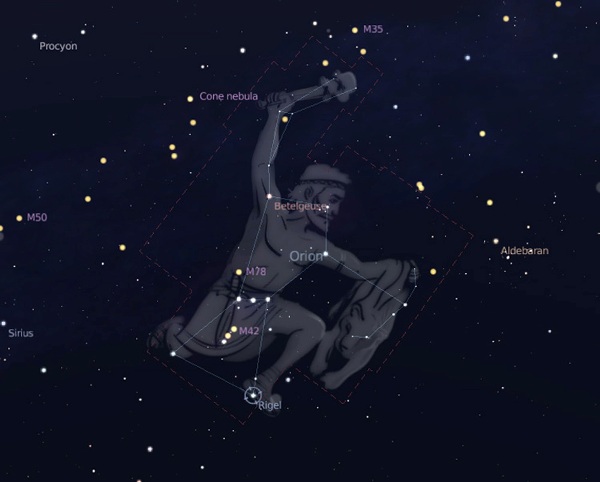 Это самое большое и красочное созвездие. Его хорошо видно осенью и зимой. Орион можно увидеть над территорией всей России. Расположение его звезд напоминает очертания человека.