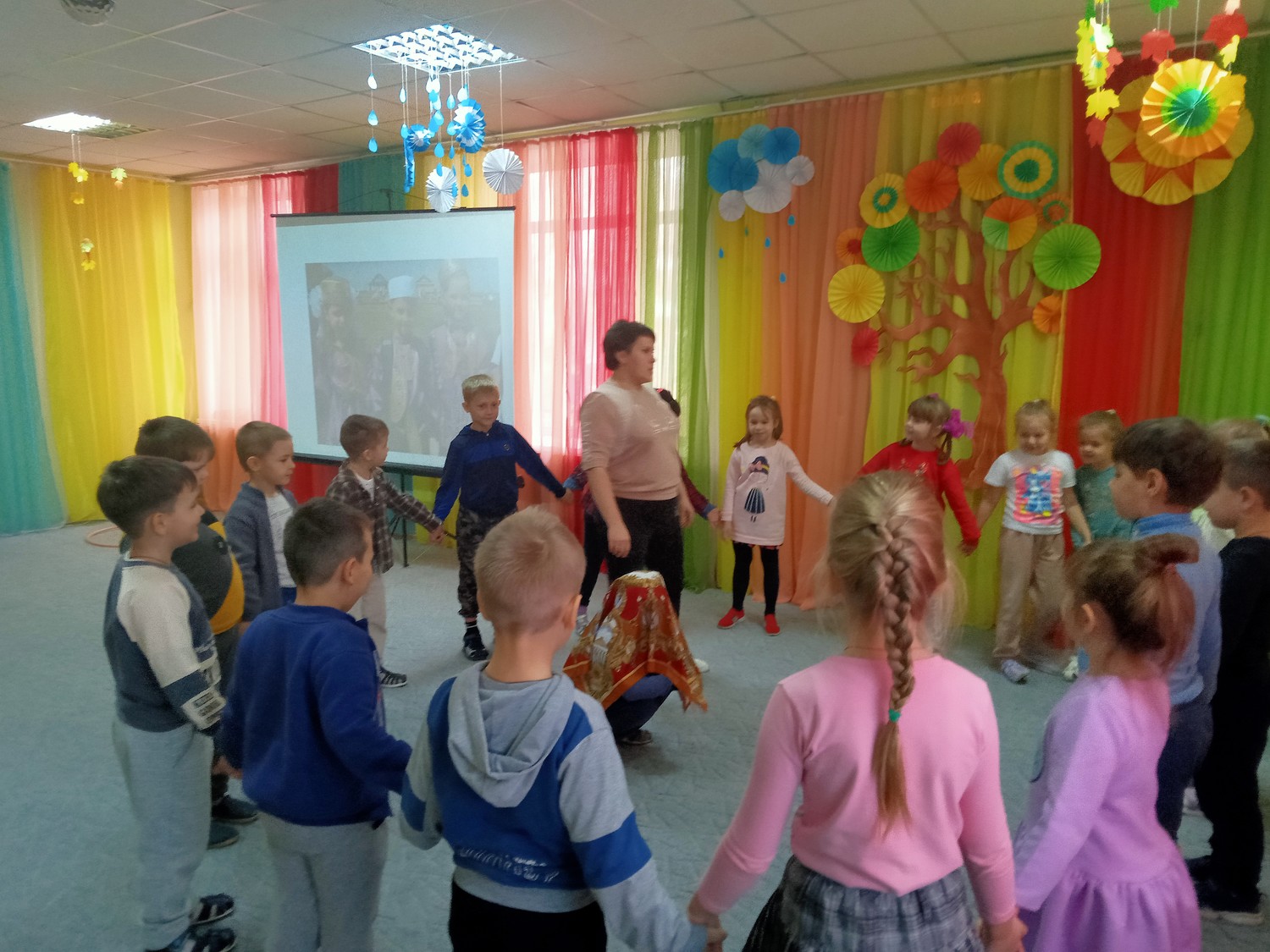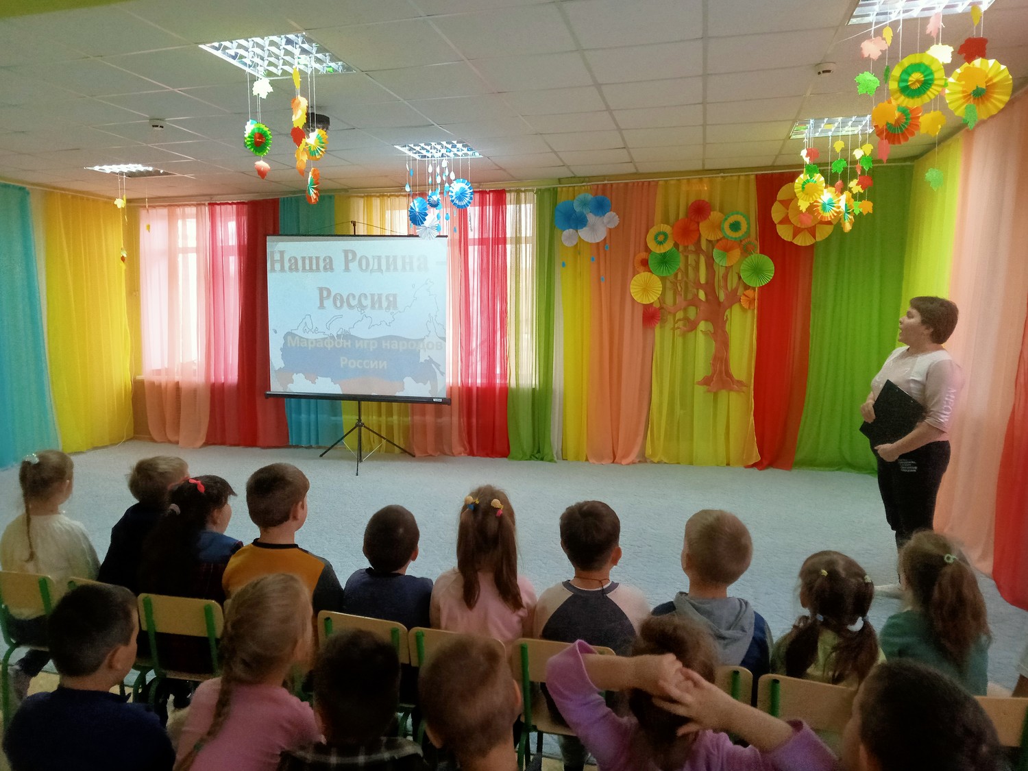 Далее ребята совершили мультимедийное путешествие по нашей стране, вспомнили какая она большая и как много национальностей в ней живет, пополнили свои знания о красоте и разнообразии игр различных народов.