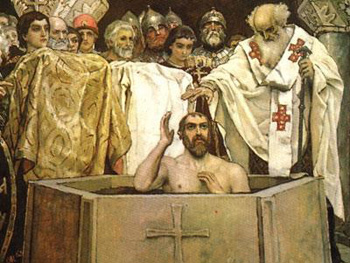 В конце лета 988 г. Владимир собрал всех киевлян на берегу Днепра и в его водах их крестили византийские священники. Это событие и вошло в историю как крещение Руси, став началом длительного процесса утверждения христианства на русских землях.