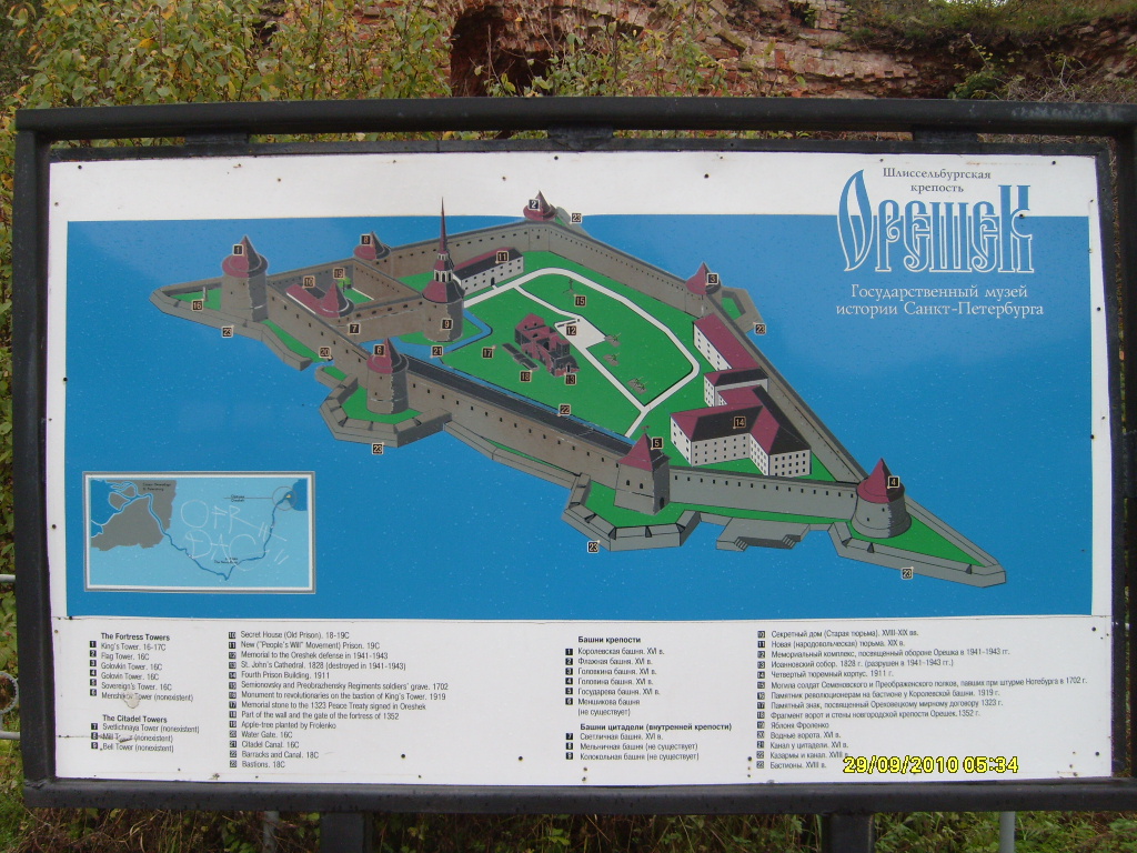 Раннее утро. Погода Санкт-Петербургская классическая. Проскользнула мысль об отмене поездки, но решив, что «…у природы нет плохой погоды…» мы дружно проследовали на посадку. В автобусе нас уже ждала приветливый экскурсовод Ирина. Автобус тронулся, и Ирина начала свой рассказ,касаясь о каждой улице, которые мы проезжали. Дети с интересом слушали её рассказ.Стоит отметить, чем ближе мы были к крепости, тем лучше становилась погода – прекратился дождь, и среди серой пелены облаков проблескивали лучи солнца. Экскурсовод рассказала нам историю крепости «Орешек» с самого начала. «Крепость Орешек получила свое имя от названия Орехового острова, на котором она была основана в 1323 году князем Юрием Даниловичем, внуком Александра Невского. В 1333 году город и крепость переданы в отчину литовскому князю Наримунту, который ставит сюда своего сына Александра - ореховский князь Александр Наримунтович. При этом Орешек становится столицей удельного Ореховецкого княжества. Позднее в Орешке был взят шведами в плен новгородский боярин-дипломат Козма Твердиславич.В 1349 году, после отбития крепости у шведов,здесь посажен воевода Иаков Хотов. В 1352 году построены каменные стены. В 1384году сын Наримунта Патрикей Наримунтович (родоначальник князей Патрикеевых) был приглашён в Новгород и был принят с большими почестями и получил город Орехов,Корельский городок (Корелу), а также Луское (с. Лужское). В XV веке, после подчинения Новгородской республики Московскому княжеству, крепость была полностью перестроена.Позднее вплоть до 1612 года город-крепость Орешек был центром Ореховского уезда в Водской пятине Новгородской земли. Во время русско-шведских войн неоднократно подвергалась нападениям со стороны Швеции.В сентябре1611 года шведские войска под руководством Делагарди осадили крепость, и в мае1612 года крепость была взята измором. Из 1300 защитников крепости в живых осталось около 100 человек, умирающих от голода, но так и не сдавшихся. Шведы назвали крепость — Нотебург (Ореховый город). Согласно легенде, защитники крепости замуровали в стену икону Казанской Божьей Матери в надежде на то, что она поможет вернуть русским их землю. В ходе Северной войны русское войско под командованием Бориса Шереметева 27 сентября 1702 г. осадило крепость. 11октября, после продолжительной бомбардировки русские войска пошли на штурм, продлившийся13 часов, и одержали победу. Тогда же крепость переименована в Шлиссельбург —«ключ-город». Тем временем,наш автобус уже подъехал к пристани, рассказ экскурсовода прервался… Мы проследовали на посадку к небольшому катеру. Маленькими группами он перевез нас всех на остров.С первого шага на остров мы окунулись в историю. Все в крепости пропитано духом времени.Вот они «хранители времени» - камни, земля на которых стоит крепость. Если вдуматься и представить, кто ступал по этой земле и скольких исторических личностей она видела, трепетно становится в душе.Встретил на пристани нас мужчина средних лет – экскурсовод по крепости. Кратно он упомянул предысторию крепости с ее основания.Более подробно остановился на крепости, как политической тюрьме (с 1703г). «Узниками крепости в разное время были сестра Петра I Мария Алексеевна, Евдокия Лопухина, император Иван VI, многие декабристы: Иван Пущин, Вильгельм Кюхельбекер, братья Бестужевы. С 1907 года О