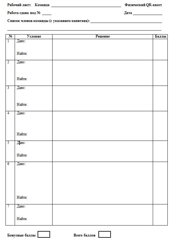 3. Команда получает рабочий лист, куда будет заносить ответы на зашифрованные задания.
