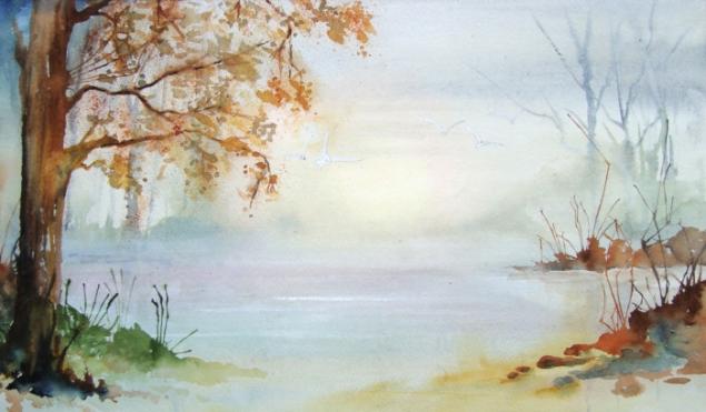 Как я мучала переводчик, но он мне плохо поддавался. Но суть такая: бралась хорошо впитывающая фактурная бумага и в тонах будущего изображения весьма насыщенно наносились цветовые пятна, затем дыроколами разных диаметров были сделаны множество отверстий и готовая почти, промежуточная работа была порвана Тузиком (шучу, конечно) на мелкие (и не только) клочки.