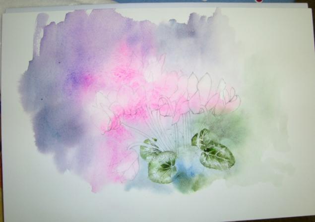 На своей страничке Ивон почти каждую работу выкладывает поэтапно, порой, начиная аж с объекта вдохновения, как вот и в этот раз с Цикламенами:
