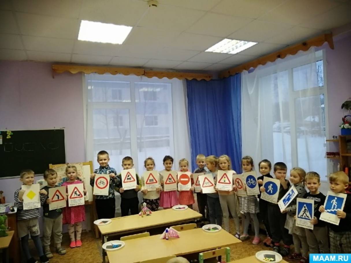 Ведущий: На улицах много дорожных знаков. Дорожные знаки – лучшие друзья водителей и пешеходов. Каждый знак имеет своё название. Дорожные знаки рассказывают о том, какая дорога как надо ехать, что разрешается, а чего делать нельзя. Бывают знаки предупреждающие, запрещающие, указательные.