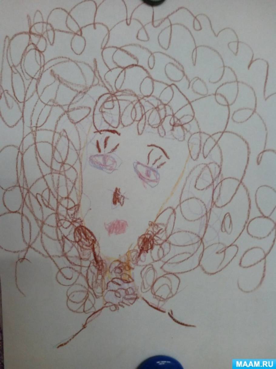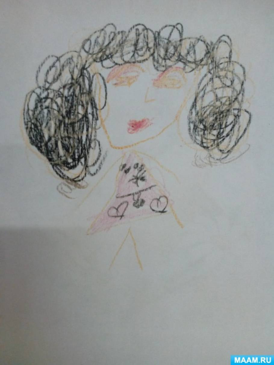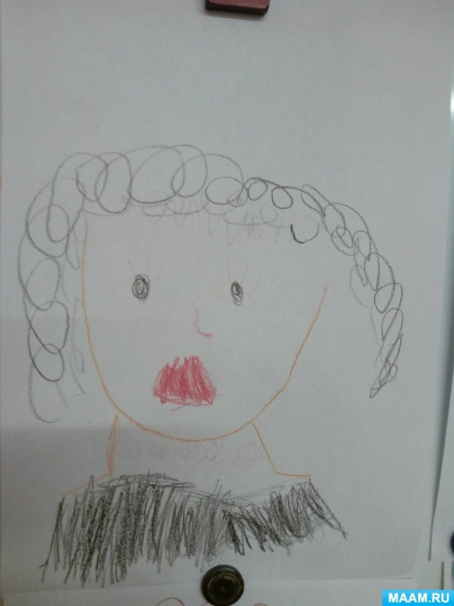Еще мы с воспитанниками учились рисовать портрет своей мамы, вспоминали самоё любимое нарядное платье, блузку, какие у мамы украшения. Затем я подписала имена детей с обратной стороны портрета, оформили выставку, где мамы должны будут угадать себя, любимую.