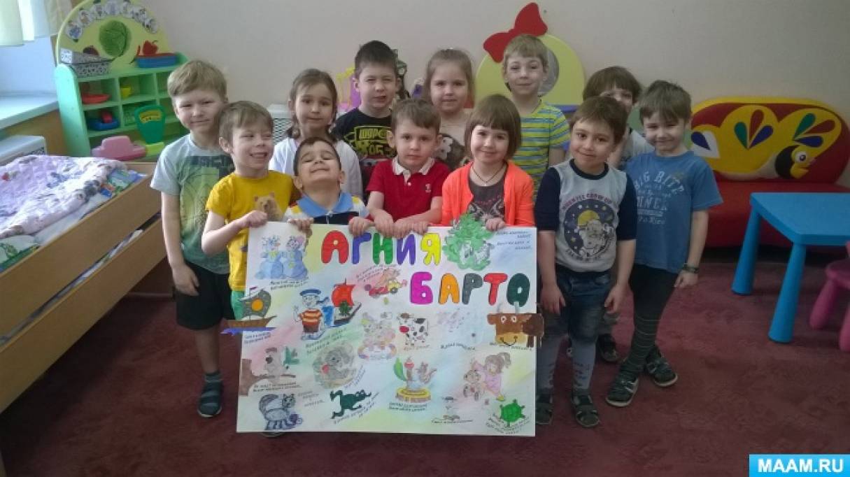 Совместно с родителями была изготовлена стенгазета, посвящённая А. Барто. Но сначала мы просто хотели провести конкурс стихов по произведениям Барто, но родители и дети к каждому выученному стихотворению, стали приносить и рисунки! Вот и получилась такая замечательная газета! А конкурс чтецов удался на славу!