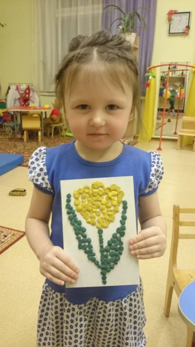 Пластилинография «Тюльпаны для любимой мамочки» в младшей группе (мастер-класс)