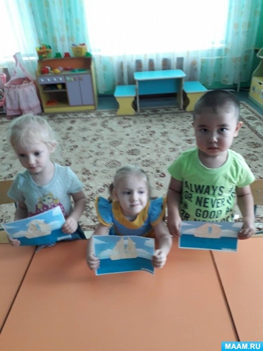После занятия можно разучить с детьми стихотворение «Кораблик» и устроить выставку детских работ.