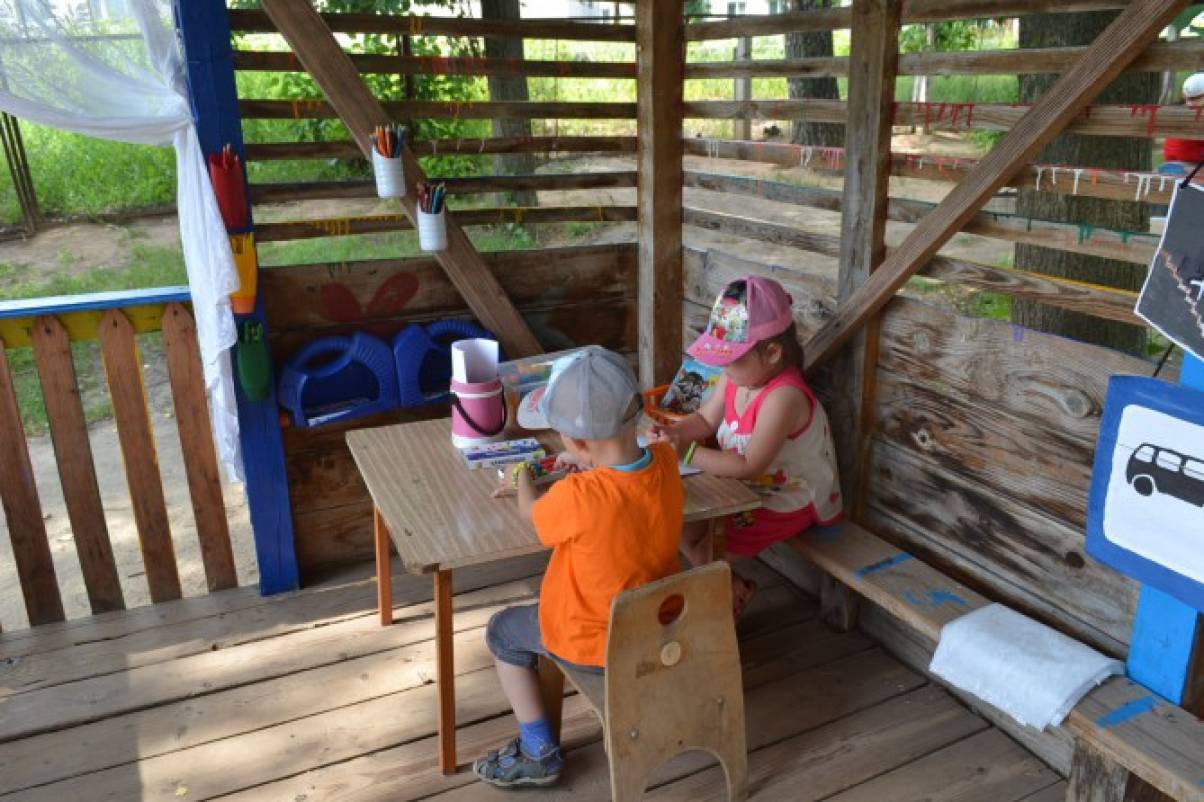 В жаркий день ребята могут посидеть отдохнуть на веранде, заняться рисованием, лепкой и конструированием.