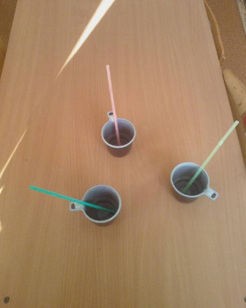 Они и вас угощают. (на столах стоят стаканчики и трубочки)