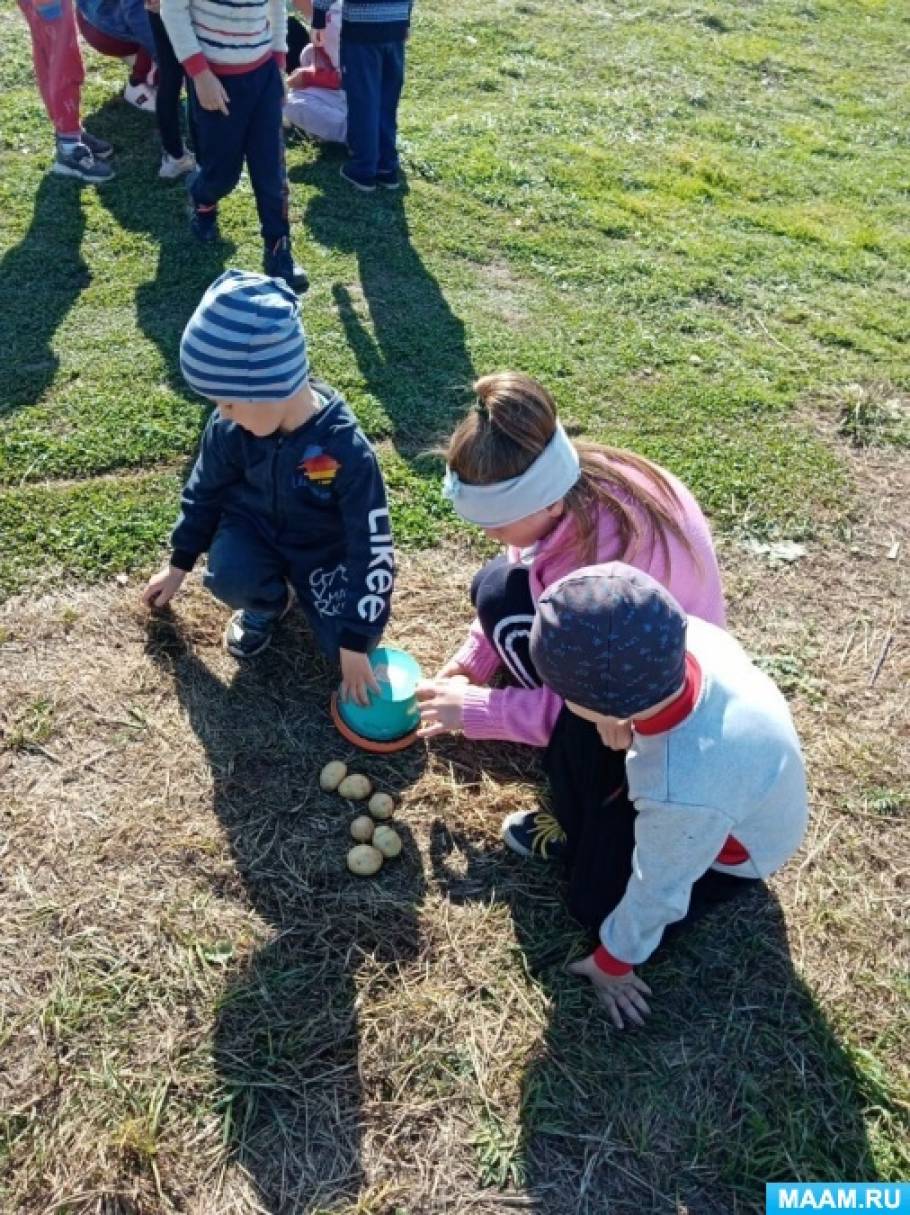 Добравшись до леса, детей ждала спортивно-развлекательная программа, подготовленная воспитателем, были организованы игры с обручами, задания "Собери картофель", игры с мячом, а также мы все вместе танцевали, шумели, пели песни.