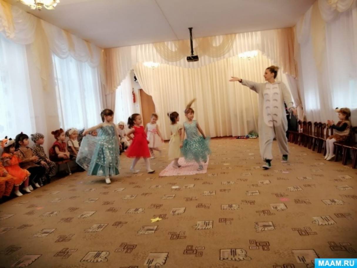 Воспитатель: ну и какой же праздник без танцев? Эльза, приглашай скорее всех на танцпол!