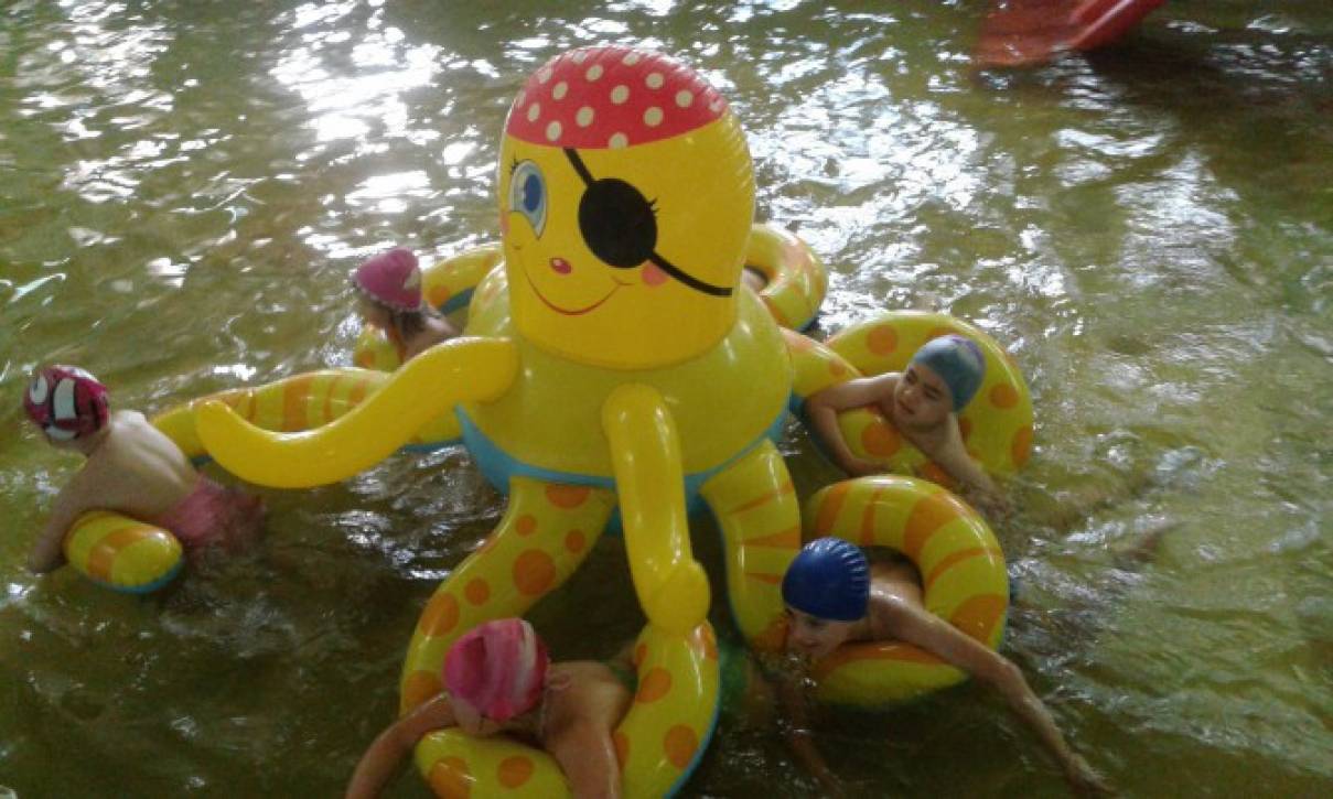 Инструктор: «Преодолели водный лабиринт, а навстречу плывёт огромный осьминог, попросим его что бы он помог нам добраться домой. »