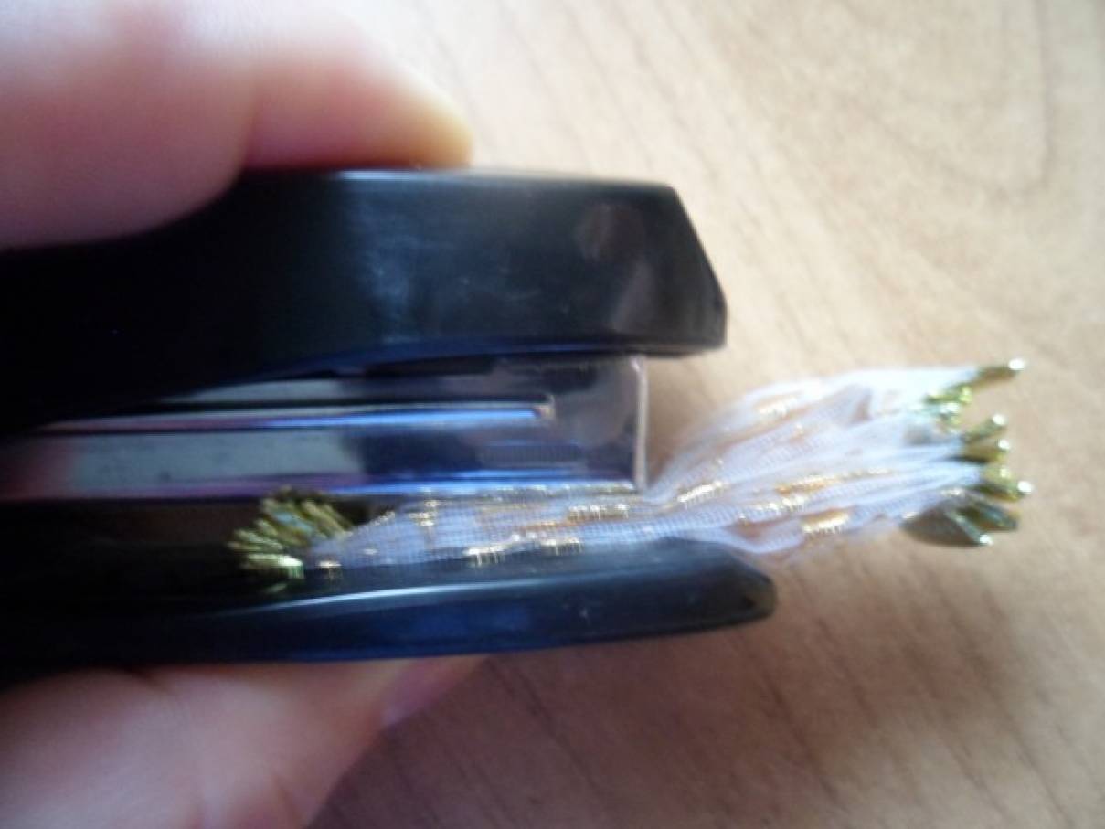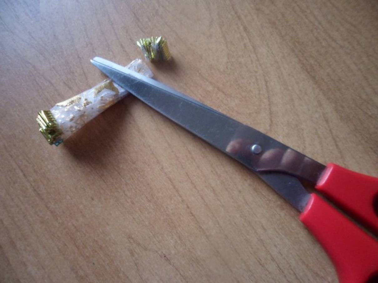 От отрезка 24 см отрезаем край с проволокой и скрепляем край степлером.