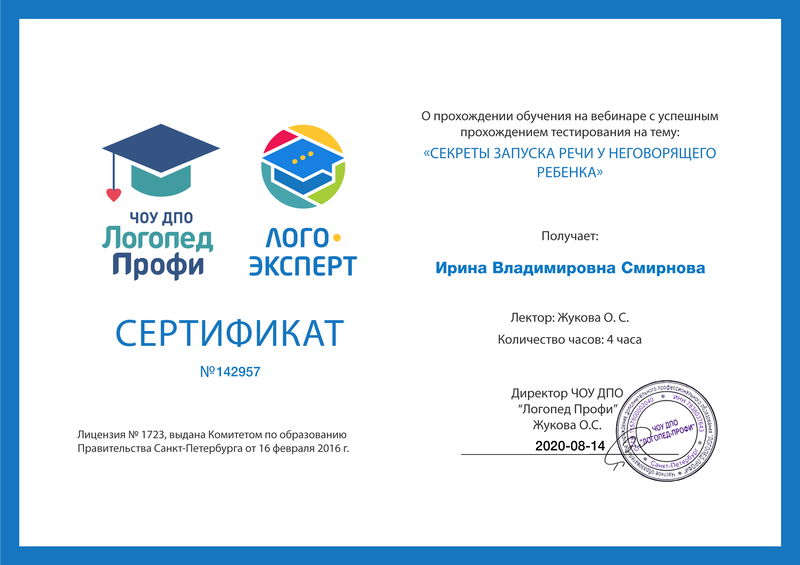 В 2017 году закончила с отличием магистратуру в Ивановском государственном университете по направлению "Психология", а так же прошла проффесиональную переподготовку по направлению "Логопедия". С октября 2015 года работала воспитателем в детском саду. С 2021 года работаю учителем-логопедом в МКДОУ "Савинский детский сад №3". На данный момент интересуюсь развитием речи дошкольников, участвую в вебинарах и мастер-классах на данную тематику.