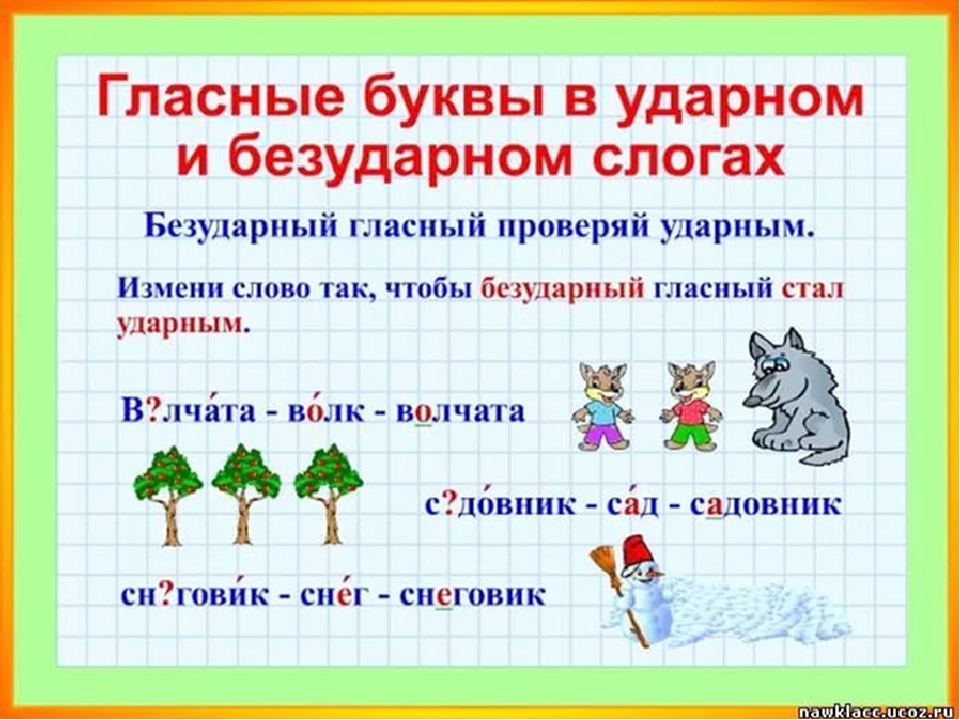 «Безударные гласные в корне слова, проверяемые ударением». Запомни алгоритм -онлайн.