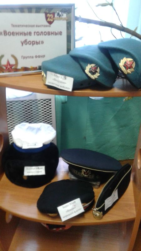 Тематическая выставка к 23 февраля "Военные головные уборы"