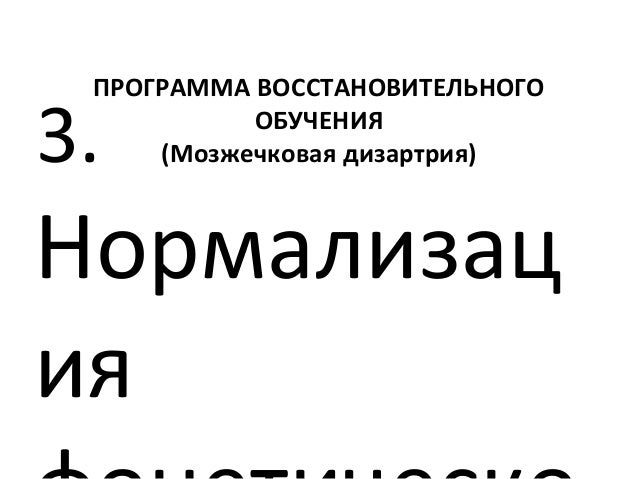- 73. ПРОГРАММА ВОССТАНОВИТЕЛЬНОГО ОБУЧЕНИЯ (Мозжечковая дизартрия)3. Нормализац ия