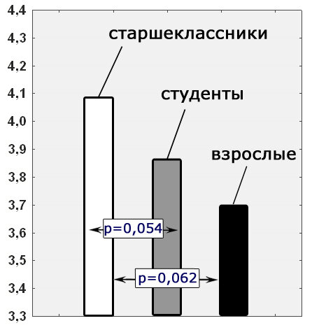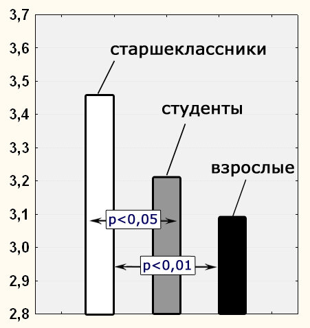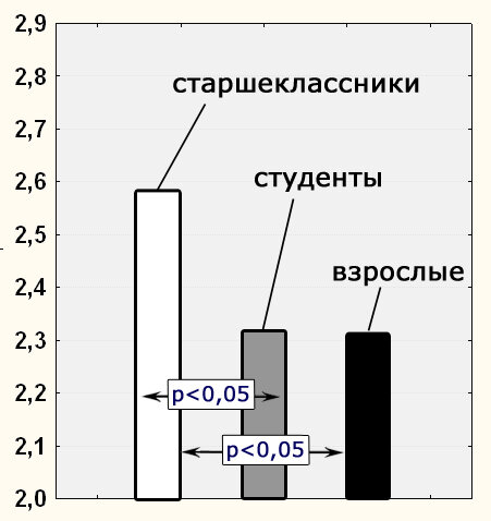 Группа старшеклассников была обозначена как «Шк» (от слова «школьники»), группа студентов обозначена как «Ст», взрослые – «Вз».